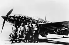 Teruhiko Kobayashi (小林 照彦, Kobayashi Teruhiko, 17 November 1920 4 June 1957) was a Japanese fighter pilot during World War II and a flying ace of the Imperial Japanese Army Air Force. He began his flying career as a bomber pilot, but then rose to fame when he became the leader of the 244th Sentai, making him the youngest sentai leader in the IJAAF when he took command in November 1944.[1] He was described as an excellent and charismatic leader by his men and under his command the 244th would become the most famous and successful aerial defense unit in Japan.[2] While leading this unit he achieved five kills (three Boeing B-29 Superfortresses and two F6F "Hellcats") in the aerial defense of the Japanese Home Islands. He would survive the war and in 1954 join the newly created Japan Air Self-Defense Force (JASDF).