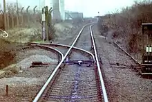 The branch is connected to the national rail system at Thames Haven Junction between East Tilbury and Stanford-le-Hope stations 26 miles 41 chains (42.67 km) from a datum at London Fenchurch Street.[11] The western end of the branch is a two track line designated Down Thames Haven and Up Thames Haven running nearly 2 miles to Port Junction located at 28 miles 33 chains (45.73 km) from the datum. The boundary between Network Rail infrastructure and DP World is at the former British Dredging siding at 28 miles 9 chains (45.24 km). From Port Junction the branch splits into 3 lines:[11]