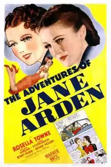 The Adventures of Jane Arden is a 1939 American crime film directed by Terry O. Morse and written by Vincent Sherman, Lawrence Kimble, and Charles W. Curran. The film stars Rosella Towne, William Gargan, James Stephenson, Benny Rubin, Dennie Moore and Peggy Shannon. The film was released by Warner Bros. on March 18, 1939.[1][2][3]