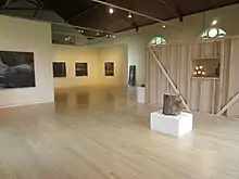 The Art Gym was founded in 1980 by Marylhurst University art faculty members Kay Slusarenko, Paul Sutinen, and Terri Hopkins, who together raised $1500 from a banquet and cookie sale, to open the 2,700 square foot gallery. Hopkins, in particular, lead the charge to curate the exhibits, and to raise the necessary funds for them. The university funds the space and basic infrastructure.[1] Since then, the gallery has occupied what was previously the campus gymnasium and theater on the third floor of the university's B.P. John Administrative Building. The Art Gym is dedicated to producing exhibitions and publications featuring artists of the Pacific Northwest.[2]