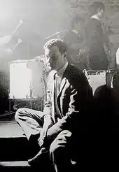 The Beatles—then consisting of Lennon, McCartney, Harrison, and Best—were due to perform a lunchtime concert in The Cavern Club on 9 November 1961,[23] as part of a residency, for £3, 15 shillings a concert.[9][24] According to Sytner, Epstein had visited the club quite a few times previously on Saturday nights, once asking Sytner to book a group for his twenty-first birthday party.[25] Epstein asked Harry to arrange for Epstein and his assistant, Alistair Taylor, to watch the Beatles perform, so Epstein and Taylor were allowed into the club without queuing, with a welcome message being announced over the club's public-address system by Wooler, the resident DJ.[26] Epstein later talked about the performance: