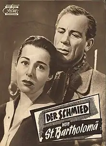 The Blacksmith of St. Bartholomae (German: Der Schmied von St. Bartholomä) is a 1955 West German drama film directed by Max Michel and starring Viktor Staal, Marianne Koch and Annie Rosar.[1] [2] It was shot on location at Berchtesgaden in Bavaria and in a makeshift studio nearby. The film's sets were designed by the art director Curt Stallmach. It was part of the postwar boom in heimatfilm that peaked around this year.