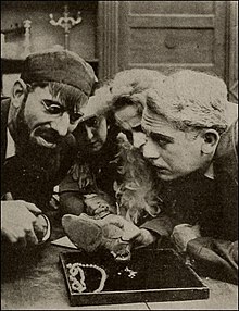 The film's cast and credits were unbilled and very few details emerged, but two scholars have claimed that it featured Lon Chaney. Jon Mirsalis states that Chaney has an unbilled part as a pawnbroker.[5] Michael Blake notes that Chaney had a role in the film, but also states that the film had only one reel and lists the production code as 0119. Blake's claim that it was a single reel is the subject of dispute because the release was originally referred to as a two-reel production in publications and many advertisements. Indeed, Blake's book cites a review from "Moving Picture World" that stated "Edwin August has written a brilliant two-part drama along this theme....", but he doesn't state if a two-part movie means one or two reels.[8][9]