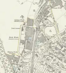 - ↑ "SPW042551 SCOTLAND (1933). Barry, Ostlere and Shepherd Ltd. Rosslyn and Lorne Linoleum Works, Kirkcaldy. An oblique aerial photograph taken facing north-east". Britain from Above.