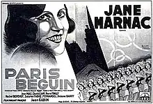 The Darling of Paris (French: Paris Béguin) is a 1931 French drama film directed by Augusto Genina and starring Jane Marnac, Jean Gabin and Jean-Max. It was one of the first films to portray Gabin in his characteristic 1930s setting of pessimistic working class locations.[1]