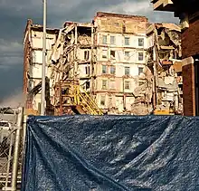 On June 6, 2023, demolition was planned to start on the partially collapsed building. City officials initially reported that demolition would start two days after the collapse,[14] but there were numerous delays due to protesters pushing for the search of missing individuals. There were also health concerns due to possible asbestos and other hazardous materials located inside the building, which prompted the city to order individuals living nearby to evacuate.[14] Demolition began on June 12, 2023.[15]