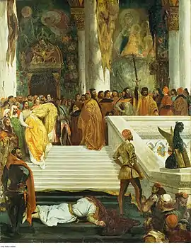 The Execution of the Doge Marino Faliero is an oil painting on canvas of 1826 by the French Romantic artist Eugène Delacroix, inspired by the 1821 play Marino Faliero, Doge of Venice by Lord Byron, which in turn was based upon events in the life of the Venetian Doge Marino Faliero (1274–1355).[1] Today the work is part of the Wallace Collection in London; as of 2021 it is listed as "not on display".[2][3]