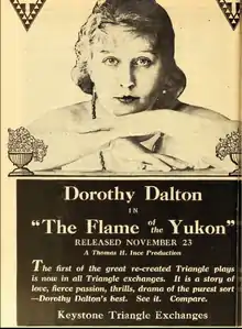 The Flame of the Yukon is an extant 1917 American silent drama film starring Dorothy Dalton and directed by Charles Miller. The film was produced and distributed by the Triangle Film Corporation.[1][2]