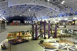 The Galleria was constructed in 1991 as part of a plan to increase retail space in Hatfield. The A1(M), a bypass of the old Great North Road from London, was built as a cut-and-cover tunnel with The Galleria on top, while also intentionally making an all-glass building to celebrate the aeronautic history of Hatfield. [1]