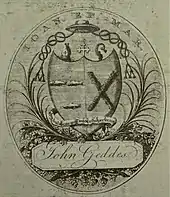 Fr. John Geddes (1735-1799) was the son of a farmer and was born at Mains of Corriedoun,[2] Banffshire on August 29, 1735. He is said to have been the elder brother of the biblical critic Dr Alexander Geddes, who died in 1802 and is buried at St Mary's, Paddington.[3][4][5] He had another brother, David Geddes, who had a daughter named Margaret.[6]