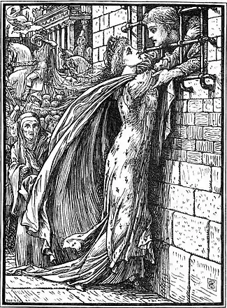 Although De Morgan's stories, including “The Heart of Princess Joan,” have a folk-like feel, they are original and recorded in a style similar to that of Hans Christian Andersen.[6][2] This might be due to the fact that these stories were told to children before their final form was decided on and then published.[2][7] This story, in particular, draws on the themes of enduring love and personal sacrifice, which are manifested by the hero, Prince Michael; these are reoccurring themes in De Morgan's stories.[2] Although De Morgan's fairy tales usually comment on Victorian culture, of which she was a part, there is a lack of scholarly discussion about such parallels in “The Heart of Princess Joan.”[2] De Morgan's stories are also said to “question the value of wealth and power.”[8] This is clearly seen in “The Heart of Princess Joan” when Prince Michael is tempted by the sumptuous appearance of the Yellow Fairy's castle, which in truth, turns out to be as hideous and grotesque as the fairy herself.[9]
