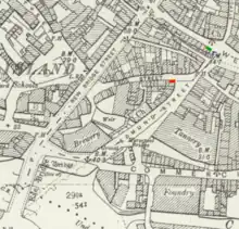 Edmund Street was previously the main road from Exeter's West Gate to the Old Exe Bridge, and most of the currently visible old bridge was excavated during the demolition of Edmund and Frog Streets.[9] The church on the bridge, the ruins of which are still clearly visible, including the tower, was St. Edmund's church, which was on Edmund Street.[10]