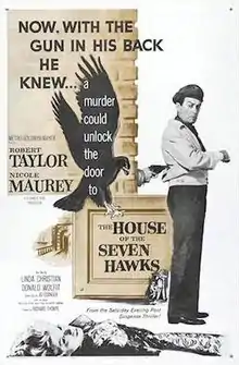 The House of the Seven Hawks is a 1959 British mystery film directed by Richard Thorpe and starring Robert Taylor, Nicole Maurey and Linda Christian.[2] It was the final film by Robert Taylor under his twenty five-year contract with MGM.[3] The film follows an American captain searching for sunken treasure who becomes entangled with criminals and is arrested by the Dutch police. It is based on the Victor Canning novel The House of the Seven Flies, published in 1952.[4]