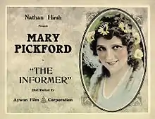 The Informer is a 1912 American short drama film directed by D. W. Griffith and featuring Mary Pickford, Henry B. Walthall, Harry Carey, Lionel Barrymore, Dorothy Gish, and Lillian Gish. It was filmed in the Pike County town of Milford, Pennsylvania.[1] Prints of the film survive at the film archive of the Library of Congress.[2][3]