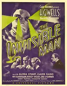 Following the success of Dracula, Richard L. Schayer and Robert Florey suggested to Universal Pictures that an adaptation of H.G. Wells's The Invisible Man as early as 1931.[10] Though promoted as being based on of H.G. Wells' novel The Invisible Man, the screenplay only follows the basics of the original novel.[1] After going through several potential directors, including Florey, Cyril Gardner, E. A. Dupont, with James Whale eventually being chosen.[10] [11] Shooting of the film began in June 1933 and concluded in late August.[12]