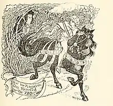 ![]() The youth and the horse leave the Magician behind the thicket of thorns. Illustration by Henry Justice Ford for The Grey Fairy Book (1900). | |
