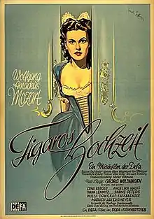 The Marriage of Figaro (German: Figaros Hochzeit) is a 1949 East German musical film directed by Georg Wildhagen and starring Angelika Hauff, Willi Domgraf-Fassbaender and Sabine Peters.[1] It was based on the opera The Marriage of Figaro by Wolfgang Amadeus Mozart and Lorenzo Da Ponte, which was itself based on the play The Marriage of Figaro by Pierre Beaumarchais. The film was made by DEFA, the state production company of East Germany, in their Babelsberg Studio and the nearby Babelsberg Park. It sold 5,479,427 tickets.[2]