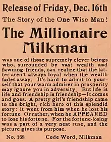 1. 1 2 3 4 Q. David Bowers (1995). "Volume 2: Filmography - The Millionaire Milkman". Thanhouser.org. Retrieved March 12, 2015.