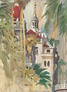 Don O'Neill, Mission Inn Towers. Watercolor.