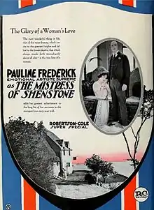 The Mistress of Shenstone is a 1921 silent film romance directed by Henry King and starring Pauline Frederick and Roy Stewart based upon the 1910 novel of the same title by Florence L. Barclay.[1][2]