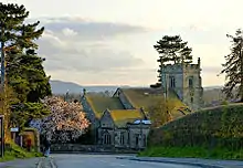 The Mug House is situated in the village of Claines, about three miles north of the city of Worcester. The exact location of the pub is near the junction where Claines Lane meets Cornmeadow Lane, just to the rear of Claines church.[4] The situation of the pub is such that one has to walk through, or very near, the graveyard of the church in order to access it. The pub is one of only two pubs in England to be situated on consecrated ground.[5]