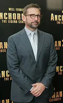 This was the final season for Steve Carell, who plays Michael Scott, as NBC did not renew Carell's contract.[92] Beginning with this season, Zach Woods, who portrays Gabe Lewis, was promoted to a series regular.[93] Erin and Gabe have begun a relationship, much to Andy's chagrin, and Andy attempts to win Erin's affection back. Holly, Michael's former girlfriend, returns to Scranton to fill in for Toby, who is on jury duty for the "Scranton Strangler" trial. Michael and Holly eventually restart their relationship. After the two get engaged, Michael reveals he will be leaving Scranton to move to Colorado with Holly to support her elderly parents. Jim and Pam adjust to parenthood, while Angela starts dating state senator Robert Lipton and gets engaged off-screen in the season finale. After Michael's replacement Deangelo (Will Ferrell) is seriously injured on the job, Jo creates a search committee to interview candidates and choose a new manager for the office. In the meantime, Dwight Schrute, and later Creed Bratton, take over as acting manager.