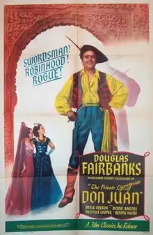 The Private Life of Don Juan is a 1934 British comedy-drama film directed by Alexander Korda and starring Douglas Fairbanks, Merle Oberon and Benita Hume. At the age of 51, it was the final role of Fairbanks, who died five years later. The film is about the life of the aging Don Juan, based on the 1920 play L'homme à la Rose ["The Man With the Rose"] by Henry Bataille. It was made by Korda's London Film Productions at British & Dominion Studios in Elstree/Borehamwood and distributed by United Artists.[2]