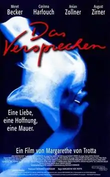 The Promise (German: Das Versprechen) is a 1995 German-language film directed by Margarethe von Trotta. It was an international co-production between Germany, France and Switzerland. Two young lovers in Berlin are separated when the Berlin wall goes up, and their stories intertwine during the three decades to German reunification. This film was chosen as Germany's official submission to the 67th Academy Awards for Best Foreign Language Film, but did not receive a nomination.[1]