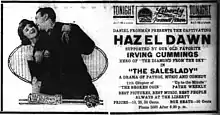 The Saleslady is a 1916 American drama silent film directed by Frederick A. Thomson and written by Willard Mack. The film stars Hazel Dawn, Irving Cummings, Dorothy Rogers, Clarence Handyside and Arthur Morrison. The film was released on March 23, 1916, by Paramount Pictures.[1][2]