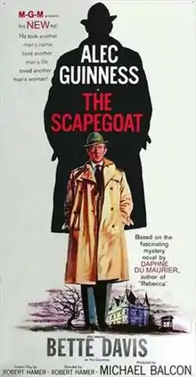 The Scapegoat is a 1959 British mystery film based on the 1957 novel of the same name by Daphne du Maurier, and starring Alec Guinness, Nicole Maurey and Bette Davis.[2][3]