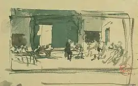 Just as Fortuny, and The Spanish Wedding, were influenced by Goya and Meissonier, he also influenced other artists.[2] His brother-in-law, Raimundo de Madrazo, borrows heavily from The Spanish Wedding in his genre painting Coming Out of Church.[9] Van Gogh also was inspired by this work, as were contemporary Spanish artists.[10] Art historians believe that had Fortuny lived longer, his work would have grown and influenced artists for many years to come.[14] Unfortunately, due to the revolution in the arts by the French Impressionists, Fortuny, and other genre artists like him, are largely unknown.[14]
