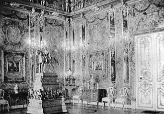 The original Amber Room in the Catherine Palace, Pushkin (Tsarskoye Selo), Russia, in an early 20th century photograph before it was lost as a result of the Second World War.
