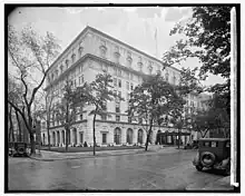 The Carlton Hotel was built by local developer Harry Wardman and opened on October 1, 1926.[2] It was designed in a mix of the Beaux-Arts and Neo-Renaissance styles by architect Mihran Mesrobian.[3] Cordell Hull lived there during World War II.