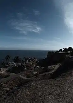 The Sunken City is on Point Fermin at the southern end of San Pedro, adjacent to seaside parks near the Point Fermin Light. Sunken City's street address is 500 W. Paseo Del Mar, San Pedro, CA, 90731.[3] Sunken City has a view of the Pacific Ocean and also the remains of concrete foundations, curbsides, sanitation, and piping from the neighborhood that once thrived on the San Pedro cliff.[2] It is one of the only landslide areas along the coastline of San Pedro that remains closed to the public.[1] However, as the graveyard of a San Pedro neighborhood, it has also become an attraction, drawing tourists and locals alike.