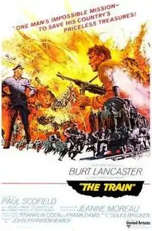 The Train is a 1964 war film directed by John Frankenheimer[1] and starring Burt Lancaster, Paul Scofield and Jeanne Moreau. The picture's screenplay—written by Franklin Coen, Frank Davis, and Walter Bernstein—is loosely based on the non-fiction book Le front de l'art by Rose Valland, who documented the works of art placed in storage that had been looted by Nazi Germany from museums and private art collections. Arthur Penn was The Train's original director, but was replaced by Frankenheimer three days after filming had begun.