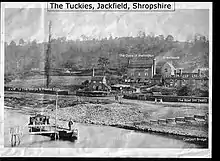 The Tuckies, an old mansion, stands (52°37′09″N 2°27′26″W / 52.6192237°N 2.4572709°W) on slopes rising from the southern bank of the river Severn, opposite Coalport. It is shown on a map, "Brosely in 1620"[7] and in the early 19th Century it was described as a small yet valuable estate, containing coal mines which are far from being exhausted though they have been worked at different periods, for the last two centuries. Apart from discussing the peculiar nature of the stratum of coal found here, the reference goes on to say that much iron is made on this side of the river at the furnaces belonging to Messrs. Hazledine of Shrewsbury, and Messrs. Forster.