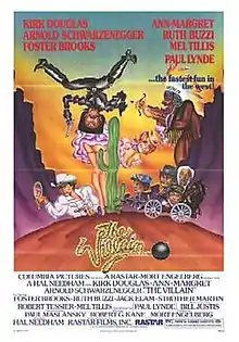 The Villain (Cactus Jack in the UK and Australia) is a 1979 American metrocolor Western comedy film directed by Hal Needham and starring Kirk Douglas, Arnold Schwarzenegger, Ann-Margret, Paul Lynde (in his final film appearance), Foster Brooks, Strother Martin, Ruth Buzzi, Jack Elam, and Mel Tillis. It is a parody of Western films, blended with an homage to the Warner Bros. cartoon Wile E. Coyote and the Road Runner.