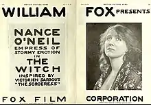 - ↑ "'The Witch' Based on Sardou's 'Sorceress', Is Next Fox Medium for Nance O'Neil", Motion Picture News, July 31, 1915, p. 68. Internet Archive. Retrieved January 4, 2020.