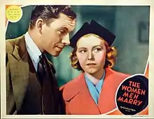 The Women Men Marry is a 1937 American drama film directed by Errol Taggart and starring George Murphy, Josephine Hutchinson, Claire Dodd and Toby Wing. The film's script is credited to Donald Henderson Clarke.[1]