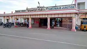 Thiruvarur Junction (station code: TVR) is a junction railway station serving Thiruvarur town, headquarters of Thiruvarur district in Tamil Nadu in India and a focal point on the branch line connecting trains from Chennai to Nagapattinam–Velankanni–Nagore–Karaikal on one line and Karaikkudi–Sivganga–Manamadurai–Rameswaram on the second line and Tiruchirappalli–Thanjavur–Thiruvarur–Nagapattinam–Karaikal on the third line and Mayiladuthurai–Thiruvarur on the fourth line that branches out of the station.