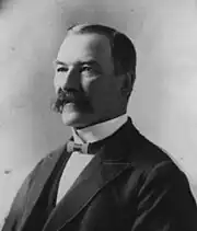 During this term, Bellamy served as the chairman of the council's finance committee, and as a member of the streets and parks, as well as the police and licensing committees.[12] During the term, notably, council the issue of the firing of the city engineer, proposed by Alderman Robert Mays, who argued that he was "not onto his job".[13] During the council vote, which required two thirds majority to pass, Bellamy exercised his vote in the capacity of alderman and acting mayor, giving him two votes, which defeated the motion. The defeat of the motion caused alderman John Robert Boyle, who had been in favour of it, to resign.[14] During the 1906 term, Bellamy also voted in favour of an annual Edmonton Exhibition,[15] the installation of a new incinerator for the city's waste,[16] and a contract for a new sewage company, Canadian White, Co. of Montreal.[17][18] The 1906 session also saw negotiations for the future High Level Bridge and Grand Trunk Pacific Railway.[19][20] A supporter of municipal ownership, he was also a staunch opponent of the sale of the street rail system to a private company. Politically, he was a Liberal.[21]