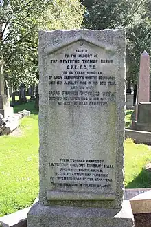 Sarah is buried with him but also memorialised on her mother's grave in Dean Cemetery.