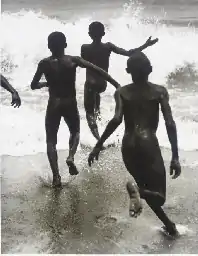 It shows three naked young African boys, caught in near-silhouette, running into the surf of Lake Tanganyika. It captured the freedom, grace and spontaneity of their movement and their joy at being alive.