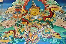 Most Tibetan Buddhist monasteries, temples and other religious structures in the Himalayas were decorated with Tibetan Buddhist wall paintings. Despite much destruction in Tibet itself, many of these survive, the dry climate of the Tibetan plateau assisting their survival, as the wet Indian climate has reduced survival of paintings from there. There are some regional differences, but the techniques described here cover the traditional wall paintings across this area. The wall paintings were executed on earthen plaster with the secco-technique.[1] A secco-technique is a painting technique in which the pigments with their binder are employed to paint onto a dry (Italian: secco) wall.