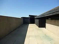 ![]() Street level, changing facilities, and beach area of the swimming pool | |