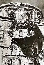 The first major Haganah stronghold to fall was the Nissan Bek Synagogue, the building whose dome had been donated by the Emperor Franz Joseph. It was essential to Rusnack defence plan and the Haganah fought tenaciously to hold on to it…Fawzi el Kutub finally ordered eight of his men to rush across an open space and place a charge at the base of the synagogue. All of them were killed or wounded. No one would volunteer for a second try. Hoping to force his men's hands by his example, Kutub sprinted across the space himself. When he got to the base of the synagogue, he saw that no one had followed him. Like a spider he pressed himself up against its wall until finally the Tunisian to whom he had promised a wife rushed out to him carrying a fifty-five pound charge. The explosion barely chipped the wall. Three more unsuccessful attempts were required before Kutub managed to blow a hole in the synagogue wall and a party of Legionnaires rushed through the smoke into Nissan Bek's interior. Sure that the Haganah would counterattack and that the irregulars swarming into the synagogue would quickly turn to looting, Kutub decided to destroy it with a 220-pound charge. His strongest follower, a one-eyed former porter in the railroad station nicknamed the Whale, staggered up with the explosive. A terrible roar shook the quarter and blew out the heart of the building. As the smoke cleared and the frightful devastation caused by the bomb became apparent, Kutub heard a cry of consternation rising from the Jewish posts around him. It was quickly replaced by a triumphant yell. A small group of Haganah led by Judith Jaharan counterattacked and took the smoking ruins of Nissan Bek from the Arabs. As Kutub had suspected, the irregulars had spent their time looting the synagogue. The Haganah found the bodies of Arab irregulars killed in their counterattack with altar cloths around their waist, pages of the Torah stuffed into their shirts, pieces of chandeliers and lamps in their pockets.[17]