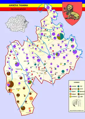 According to the census data of 1930, the county's population was 306,592, of which 53.4% were ethnic Romanians, 14.7% Russians, 12.8% Gagauz, 6.4% Bulgarians, 5.5% Jews, 3.4% Germans, 3.0% Ukrainians, 0.4% Romanies, as well as other minorities. From the religious point of view, the population consisted of 89.4% Eastern Orthodox, 5.5% Jewish, 3.0% Lutherans, 0.8% Old-style Orthodox, 0.6% Roman Catholic, 0.4% Baptist, as well as other minorities.