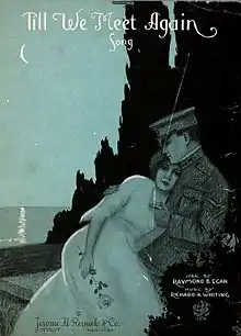 "Till We Meet Again" is an American popular song. The music was written by Richard A. Whiting, the lyrics by Raymond B. Egan in 1918. Written during the Great War, the song tells of the parting of a soldier and his sweetheart. The title comes from the final line of the chorus:
