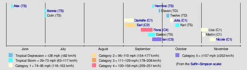 Hurricane Nicole (2022)Hurricane Julia (2022)Tropical Storm Hermine (2022)Hurricane IanHurricane FionaHurricane Earl (2022)Hurricane Danielle (2022)Hurricane Bonnie (2022)Tropical Storm Alex (2022)Saffir–Simpson scale