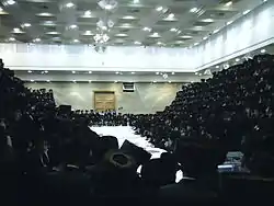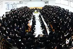 A Tish, also tische (Yiddish: טיש, lit. 'table', pl. טישן, tischn) is a Shabbat or holiday gathering for Hasidic Jews around their Rabbi or "Rebbe". In Chabad, a tische is called hitva'adut (התועדות). It may consist of speeches on Torah subjects, singing of melodies known as niggunim (singular niggun) and zemirot ("hymns"), with refreshments being served. Hasidim see it as a moment of great holiness.